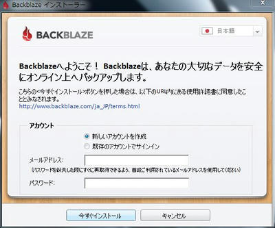 容量無制限のオンラインバックアップBackblazeのダウンロード・インストールはこちらから(無料お試し期間有)。